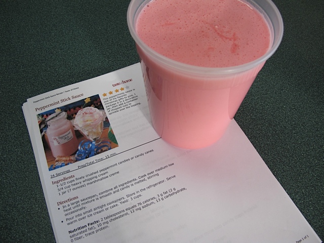 I also made the Peppermint Sauce, which despite its bright pink color is delicious. Poured over vanilla ice cream I can enjoy the taste of peppermint stick ice cream year round! This recipe is very easy and can be made in a matter of minutes. If you missed the link here is the recipe:
