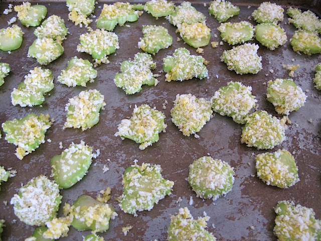 Bake the broccoli coins for about 10 minutes or until the coins are tender and fragrant.