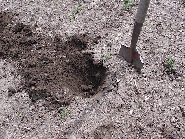 Collect your sample by pushing the blade of a garden shovel into the soil to the desired depth. Cut out a triangular wedge of soil and set it aside. Now slide your blade into the soil again taking a thin slice from the side of the hole. Save this “core” as your sample.