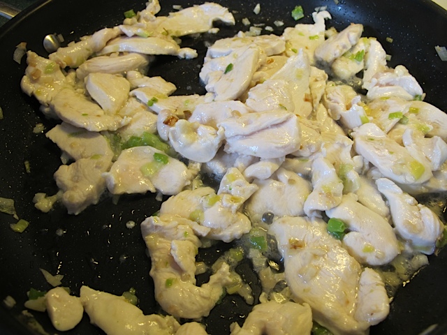 Add chicken and continue to stir-fry until the chicken is done. Remove and keep warm.