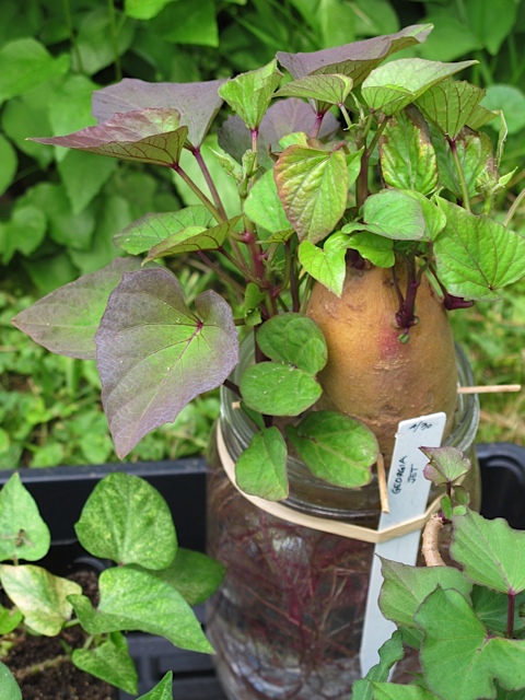 I have never grown sweet potatoes but I am going to have to give it a try. Sylvia has four varieties that she grows each year; Georgia Jet, Beauregard, Red Yam and Carolina Ruby. We spent some time going over the different way to create slips, which is what you use to plant sweet potatoes. Quite different from regular potatoes where you plant sections of the tubers.