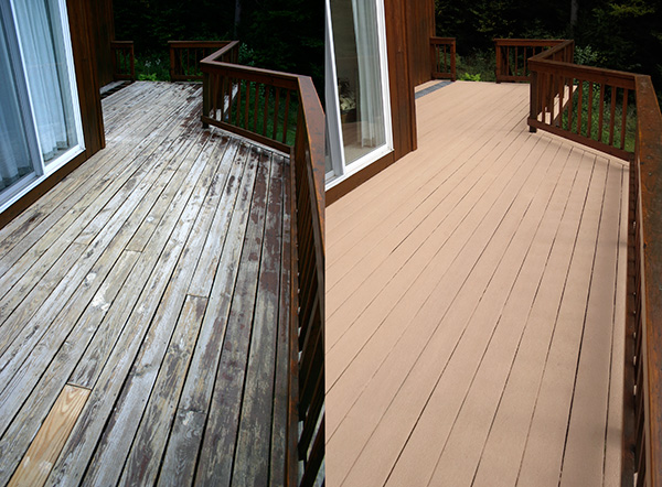We built our house in 1999; two years later we added a deck onto the front of the house. The deck is south facing so it gets a lot of sun, and living in Vermont, it also gets a lot of snow during the winter. We do a good job of keeping the deck shoveled, but it still gets a good beating from the elements. The deck had been stained but after 11 years it was in pretty poor shape.