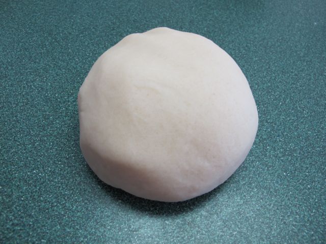 Take the mass of playdough and knead on the counter. Be careful as it is hot!