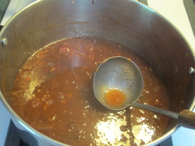 Remove hot jars from canner and ladle sauce into jars leaving ½ inch headspace.