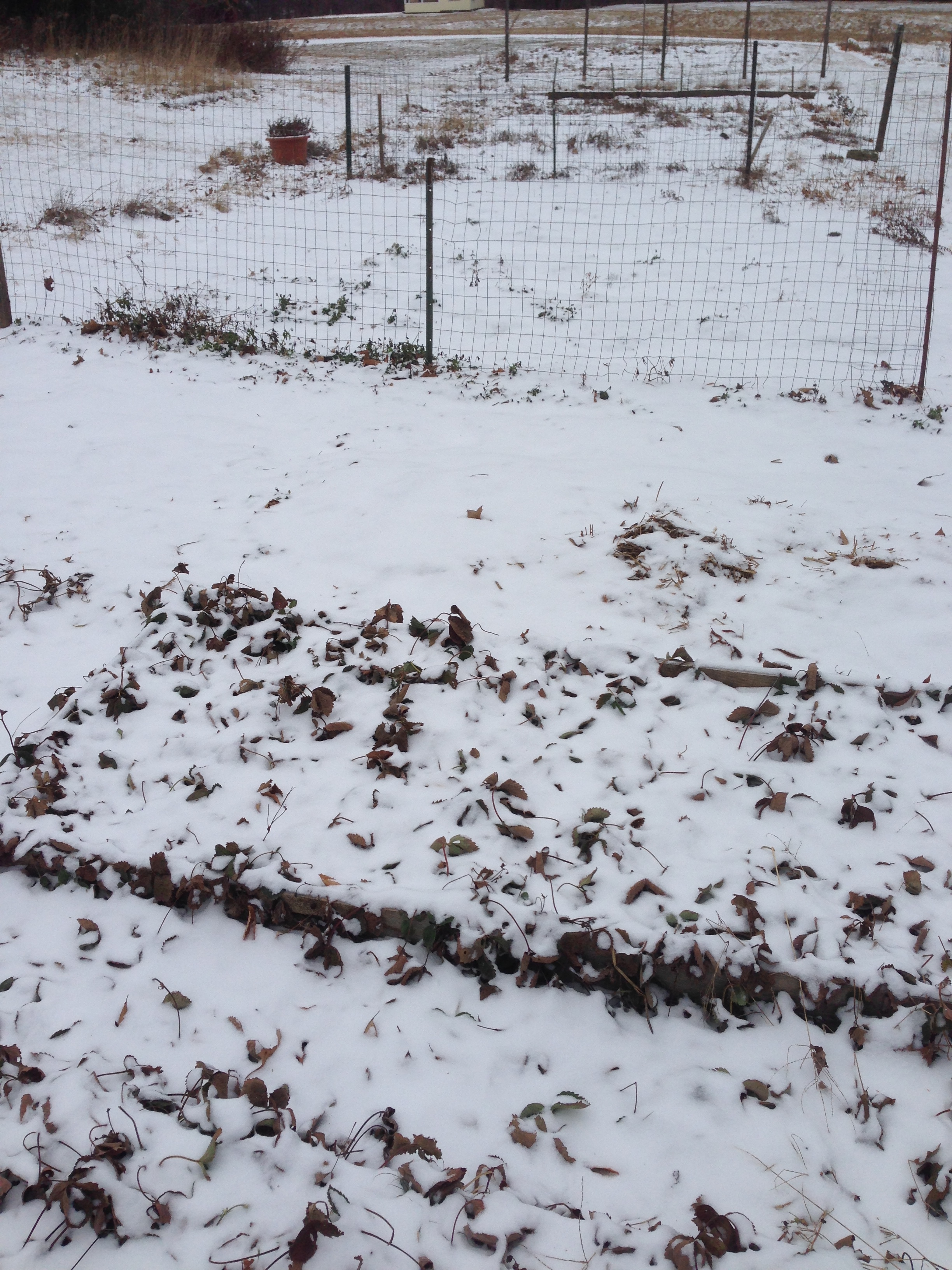 In December the garden is not much to look at, it is frozen and covered with a light dusting of snow.