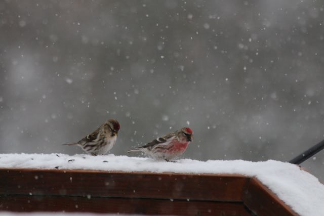 We’ve also had a large flock of Redpoles and mixed in are a few of their northern cousins the Hoary Redpoles! They are very skittish and it’s hard to get a picture of them.