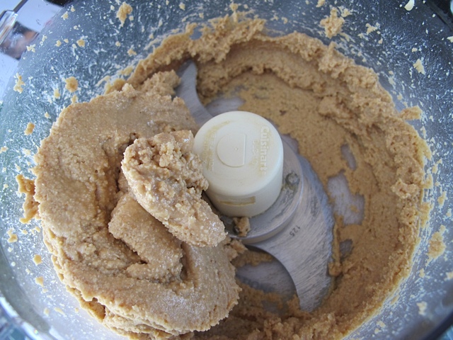 I added the salt and honey and processed for one minute. I continued to process while slowly drizzling in the peanut oil until the mixture was smooth.